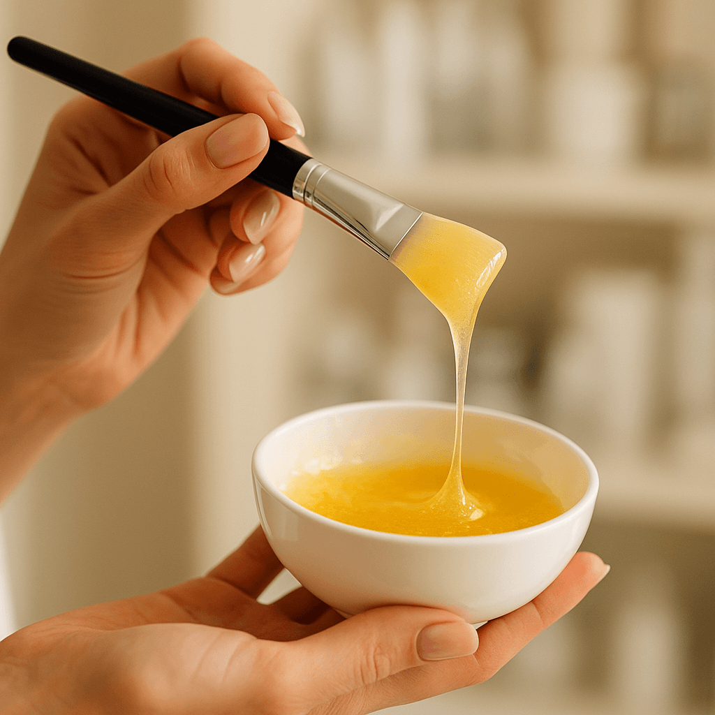 A vízzel elkevert maszkpor enyhén folyós zselévé alakul, felkenve pedig rugalmas filmréteget képez.