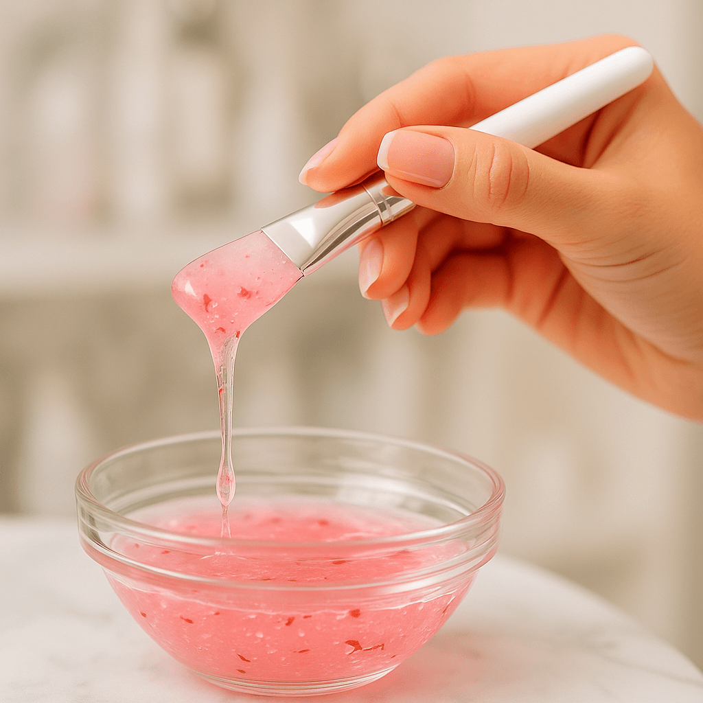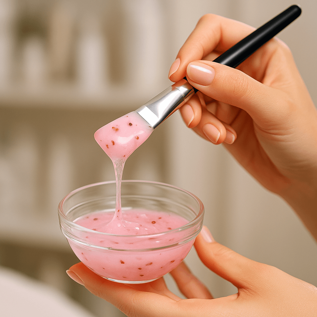 A vízzel elkevert maszkpor enyhén folyós zselévé alakul, felkenve pedig rugalmas filmréteget képez.