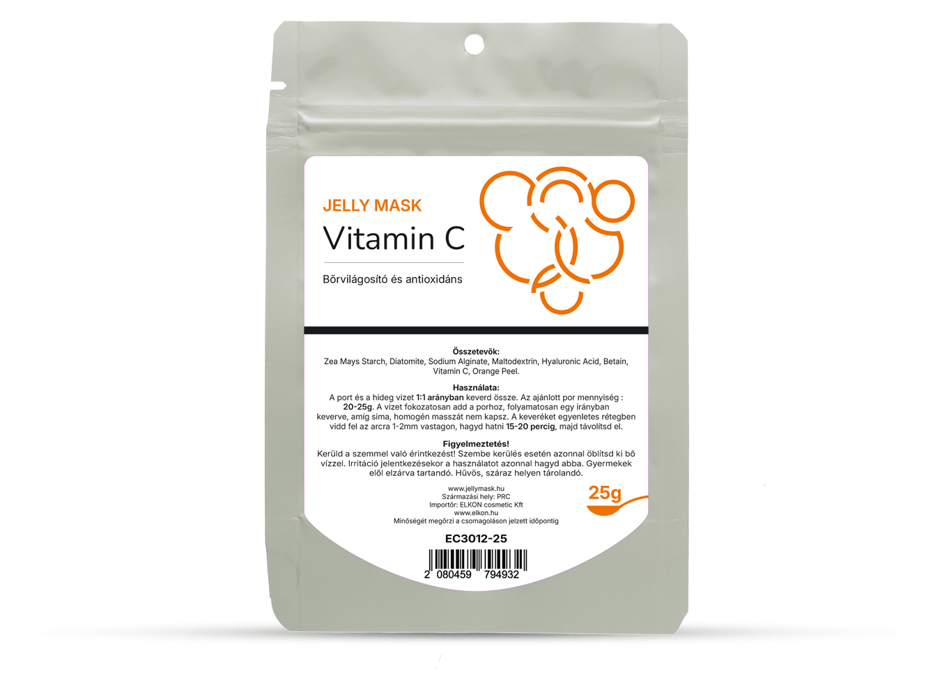 Vitamin C JELLY MASK – professzionális bőrvilágosító és antioxidáns zselé maszk, mely a por és víz találkozásából születő hűsítő zselé formájában kényezteti a bőrt. Felkenve rugalmas, nedvességmegőrző réteget képez, segítve az aktív hatóanyagok felszívódását, miközben nyugtatja és felfrissíti az arcbőrt.